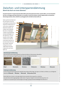 die Wärmeleitfähigkeit und der Hitzeschutz. In puncto Qualität und Dämmeigen- schaften können viele Na- turprodukte inzwischen mit konventionellen Dämmstof- fen mithalten. Pluspunkt: Häufig nehmen sie bei vergleichbarer Dämmleis- tung deutlich mehr Feuch- tigkeit auf.
