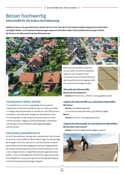 Die Vorteile greifen bei den fertig kombinierten Dämmschichten nahtlos ineinander. Insgesamt sollte bei Materialien und Material- verbindungen auf eine zertifizierte Alterungsbeständigkeit