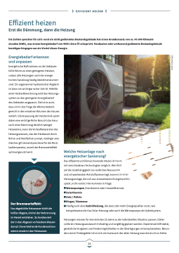 des Gebäudes angepasst. Ziel ist es auch, dass sich in der Folge die Wärme bedarfs- gerecht in den einzelnen Räumen des Hauses verteilt. Die Anpassung der Heiztechnik spielt dabei eine wichtige Rolle: Braucht das Haus nach einer Dämmung deutlich weniger Heizwärme, kann die Vorlauftemperatur des Heizungswassers, das der Heizkessel durch Rohre und Heizflächen pumpt, niedriger sein. Gleiches gilt dementsprechend für die Rück- lauftemperatur, womit der Brennwerteffekt optimal genutzt wird.